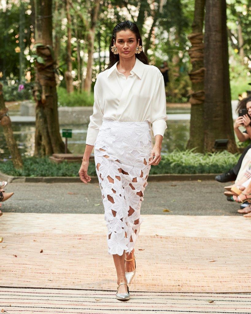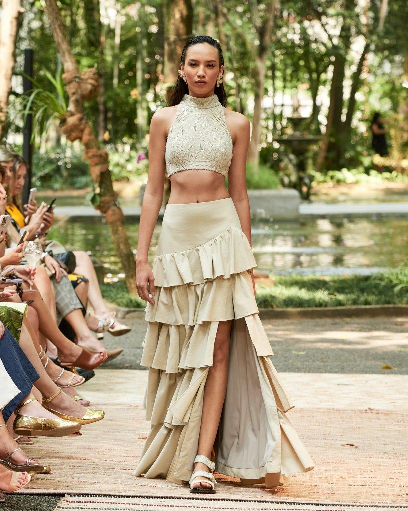 Composta por 29 looks, a coleção foi apresentada no Iate Clube Santos, localizado em São Paulo, com presença da top model Carol Ribeiro, que encantou a passarela com sua leveza e sofisticação. O ambiente delicado mergulhou em uma estética despretensiosa e elegante, com inspiração nos campos de algodão.