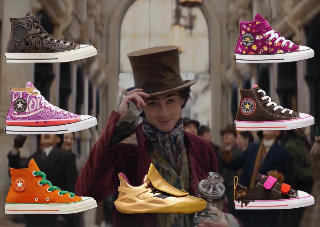 A Converse colabora com a Warner Bros. Discovery Global Consumer Products para lançar uma coleção em homenagem ao próximo filme “Wonka”. A linha de edição limitada inclui calçados, roupas e acessórios inspirados no universo extravagante de Willy Wonka. Destaques incluem duas versões do Chuck 70, uma em couro premium Chocolate Swirl e outra em camurça peluda inspirada nos Oompa Loompas.