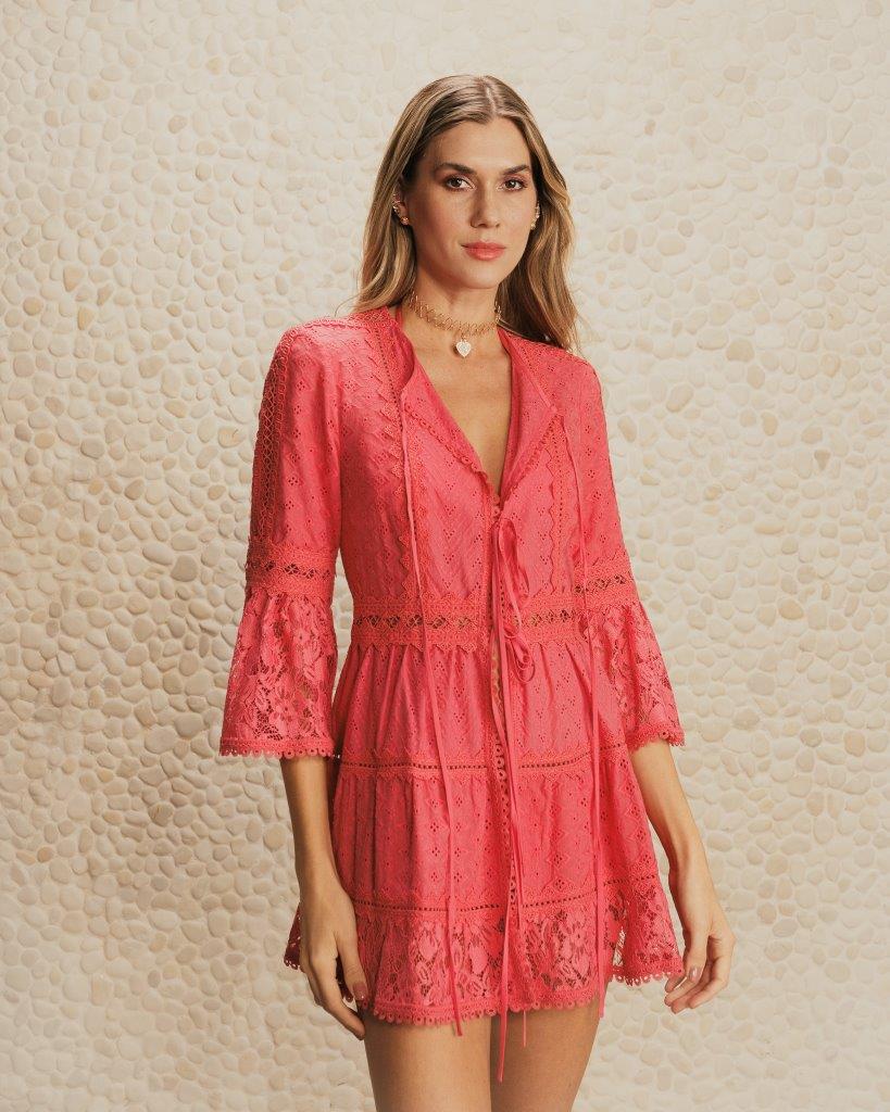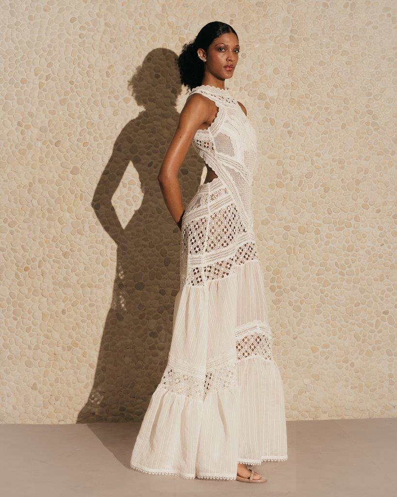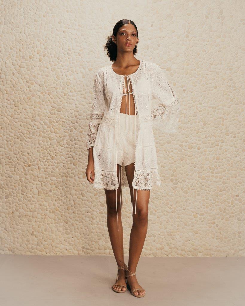 Modelos com fendas e recortes chamam atenção, além de looks esvoaçantes com um mix de materiais – marca registrada da grife. Com diversos tipos de shapes, saídas de praias e saias foram pensadas para todos os corpos e gostos. Já os vestidos trazem a delicadeza da estação a partir de tramas e aviamentos nos detalhes, o que resulta em um visual harmônico e perfeito para as celebrações de fim de ano na praia.