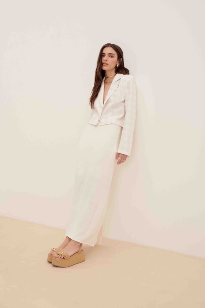 A grande novidade da temporada é a coleção “Holidays”, que traz opções para diversas ocasiões de celebrações de final de ano. A alfaiataria de viscose na cor vermelha é perfeita para o Natal, já as peças em paetês modernos e off-white transitam desde o final de ano pé na areia até produções para sunsets e festas noturnas.