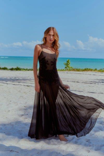 A cartela de cores da festiva coleção de Alto Verão 24 é formada principalmente por vestidos em off white, cor que reflete a elegância e leveza da estação. Os cristais e os metalizados, em paetês prata e dourado, também estão presentes através de bordados em padronagens diferenciadas, que agregam atitude e glamour para os modelos.