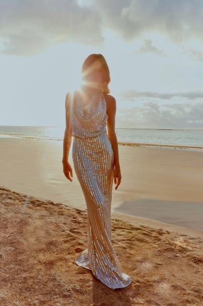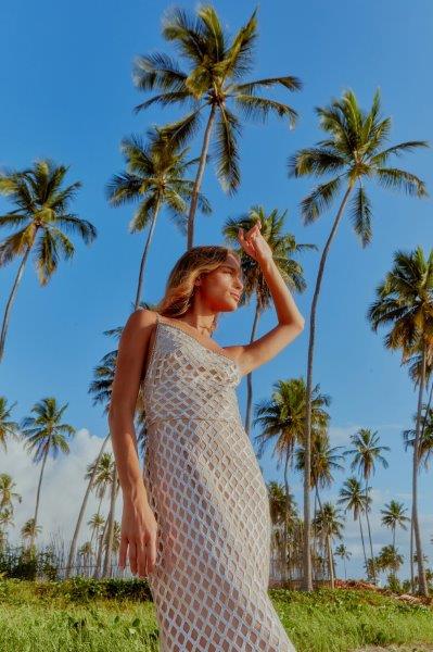 A cartela de cores da festiva coleção de Alto Verão 24 é formada principalmente por vestidos em off white, cor que reflete a elegância e leveza da estação. Os cristais e os metalizados, em paetês prata e dourado, também estão presentes através de bordados em padronagens diferenciadas, que agregam atitude e glamour para os modelos.