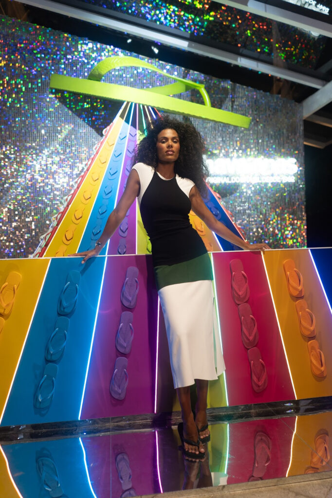 Diretamente dos Estados Unidos, Jordan Sloane adicionou um toque único ao evento. Seu look foi harmonizado de forma impecável com as Havaianas Slim Square Glitter, deixando claro que a marca é um acessório global que se adapta com qualquer guarda-roupa em diferentes contextos.