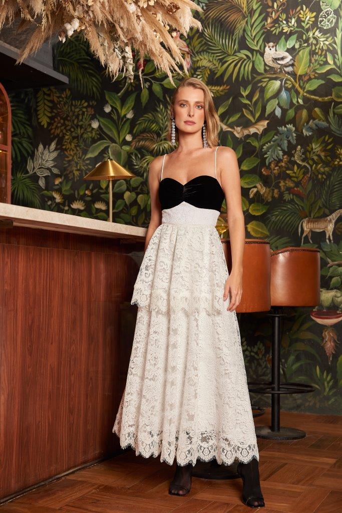 Entre mix de rendas, texturas diferenciadas e tecidos esvoaçantes, a coleção transita por peças elaboradas, perfeitas para grandes festas e celebrações. As peças em crepe patou, renda francesa e seda Georgette foram produzidas em shapes clássicos e desejados, estampando toda a delicadeza e tradição da grife.