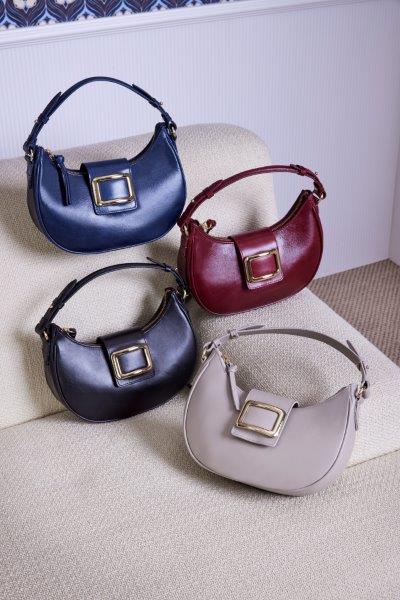 O ponto de destaque da paleta de cores fica por conta do vermelho, em múltiplos tons, como o cherry, e do azul netuno, que complementam os neutros, como o bege, o preto e o branco, em variações como o off white e o biscuit. Dentre os materiais, a grife traz como aposta peças feitas em verniz, além do couro, elemento clássico da label.