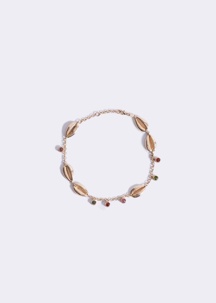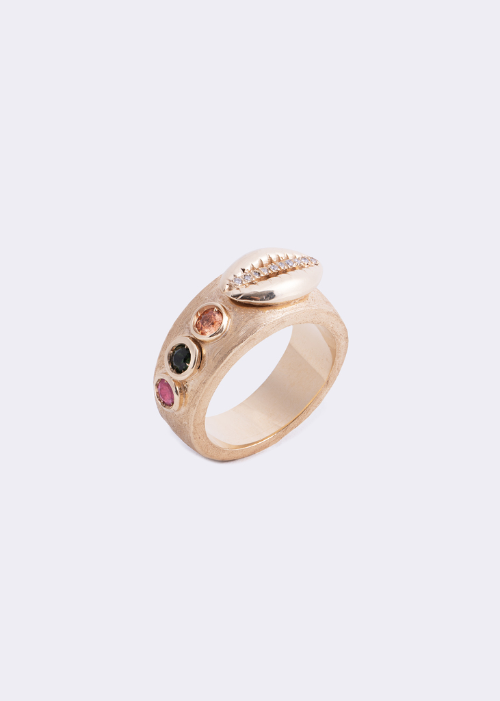 Cada peça é meticulosamente trabalhada para refletir a paisagem natural de Trancoso. Topázios azuis e turmalinas verdes remetem ao mar cristalino, enquanto citrinos e prasiolitas evocam os tons dourados da areia e o frescor da vegetação. Elementos como búzios esculpidos em ouro escovado reforçam a conexão com o oceano e sua simbologia ancestral.
