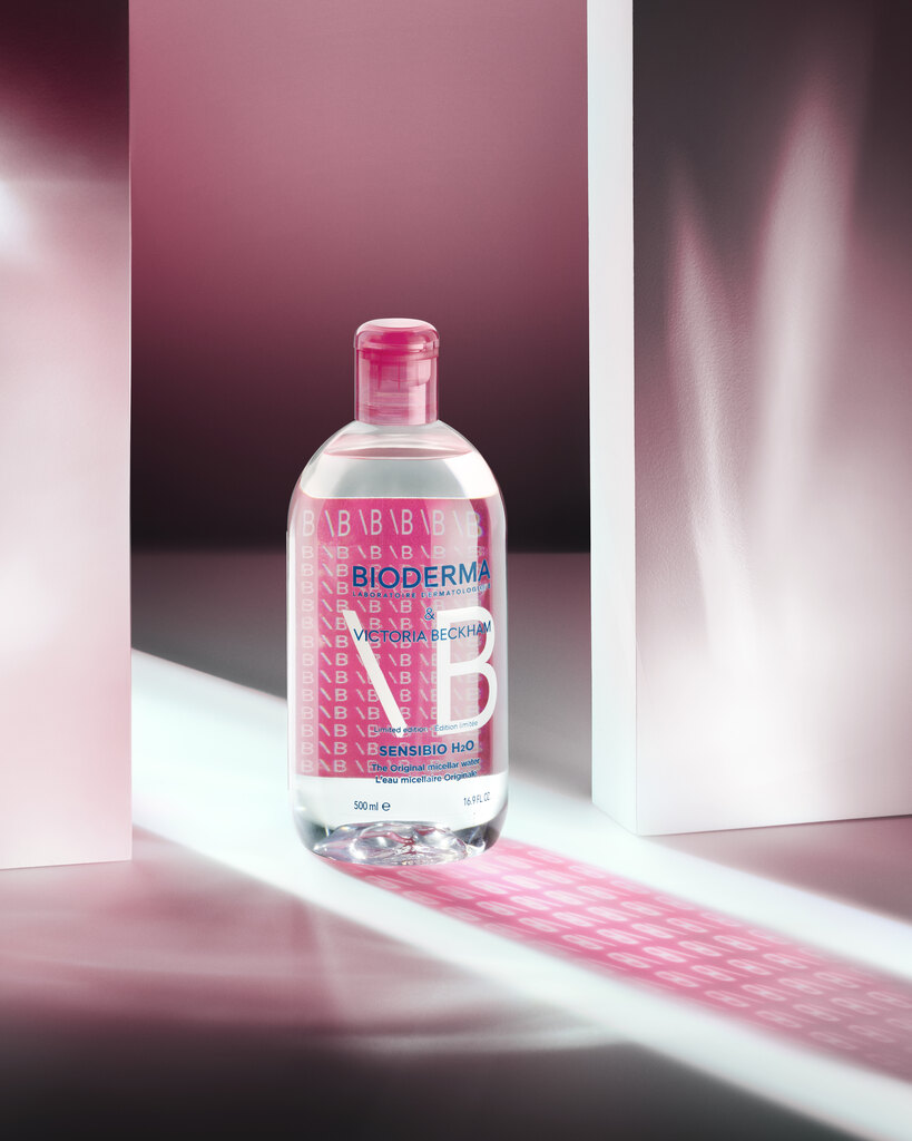 Para celebrar esse legado, a Bioderma convidou Victoria Beckham para co-criar um frasco especial da água micelar. A embalagem exclusiva traz o monograma VB e mantém a icônica tonalidade rosa da linha Sensibio, unindo funcionalidade e sofisticação. “Nenhum produto pode competir com a Sensibio H2O. Ela me acompanha todos os dias há anos”, afirma Victoria, que prioriza uma pele saudável e radiante como base para qualquer look.