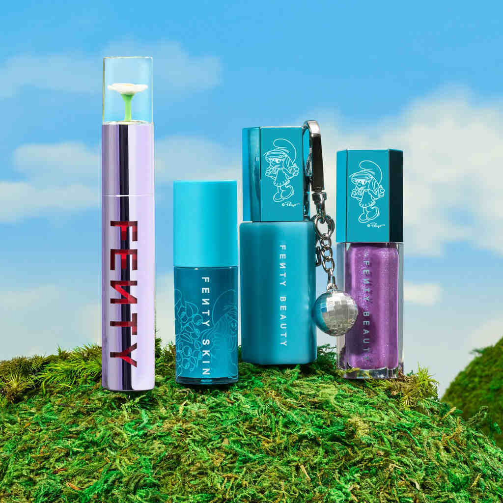 Pra marcar esse momento smurf’tástico, nasce a Smurf Crew Collection, edição limitada que une Fenty Beauty, Fenty Skin e Fenty Hair num mix ousado, divertido e (literalmente) colecionável. Sim, a nostalgia bateu forte, mas a vibe é futurista: lavandas cintilantes, texturas holográficas, gloss com cheirinho de Smurfberry e até esponjas de cogumelo (!).