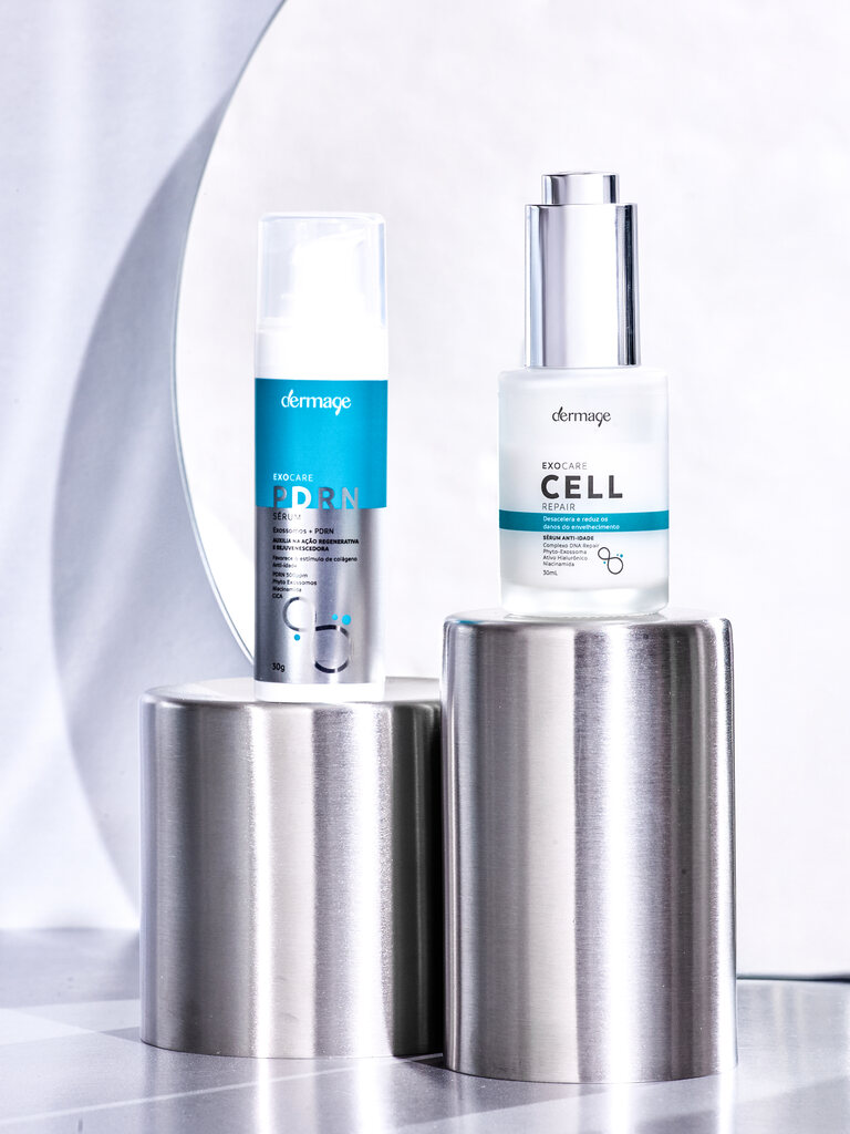 Foi pensando nisso que a Dermage trouxe o Exocare Cell Repair, um sérum que é quase um restaurador de filmes antigos, só que para a pele. Com uma fórmula inovadora que acelera em até 4 vezes a reparação natural do DNA, ele atua direto na origem dos danos invisíveis — devolvendo vitalidade, força e juventude para as células.