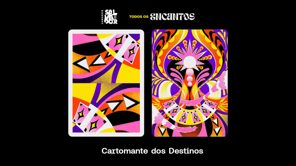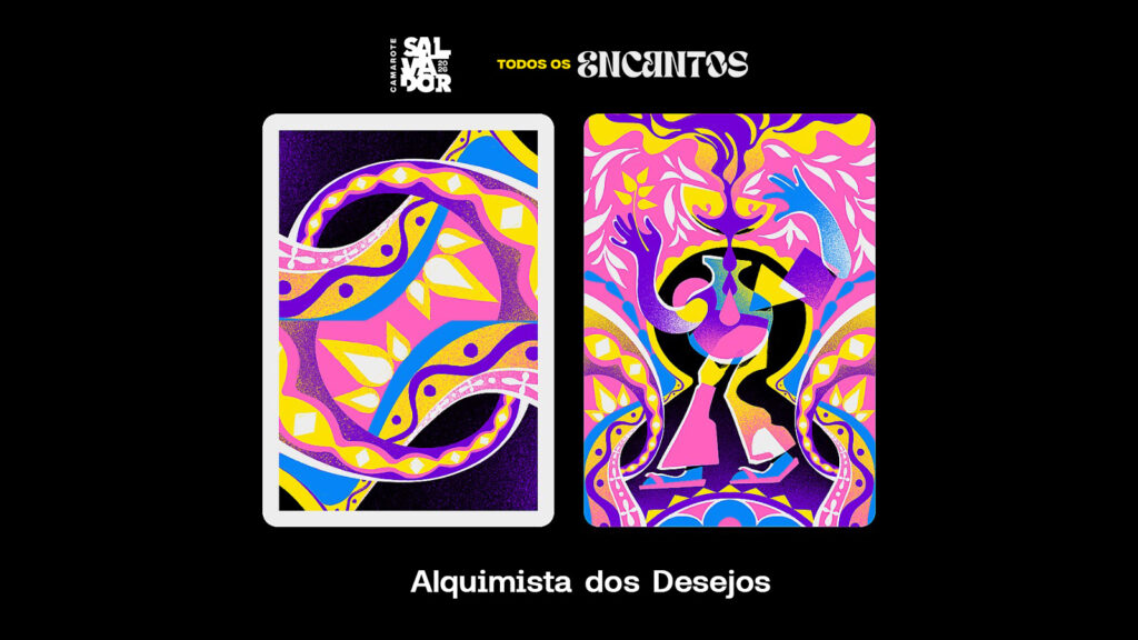 A construção do enredo liga diretamente o conceito aos ambientes e será apresentada por um Oráculo Encantado, que vai guiar quem entra no Camarote Salvador. Representado por cartas de um baralho com diferentes cores vibrantes e estampa, ele ganha vida por meio de sete personagens – pilares fundamentais nesta nova dimensão, que transportam para uma jornada inédita ativando os sentidos.