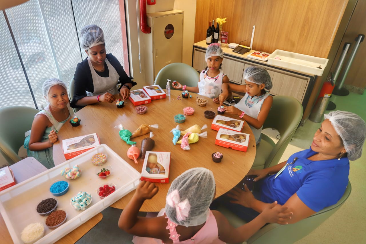 Além de degustarem os bolinhos que prepararam, as crianças, muitas delas acolhidas em situação de vulnerabilidade social, levaram para a sede da OAF um kit com doces e salgados oferecido pelo Almacen.