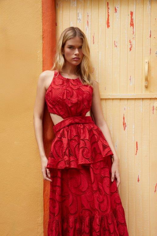 Entre as peças da coleção, estão shorts, vestidos em versões mini, midi e longas, saias fluídas e tops cropped, todos criados para traduzir leveza e elegância de forma descomplicada. Os detalhes aparecem em renda guipir, babados, barras assimétricas, paetês bordados e laise, que ganham contraste em tecidos como linho e crochê. A estampa exclusiva Bougainville, um floral vibrante que retrata a flor primavera em fundo branco com pétalas rosa intensa e ramos verdes, simboliza a energia solar e o florescer sob a luz plena, essência do conceito da linha Golden Hour.
