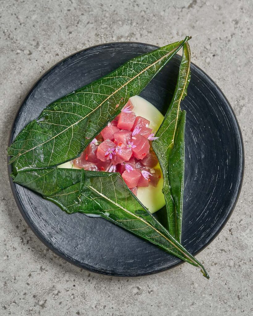 No menu criado especialmente para o Gala Dinner, o chef apresentará um percurso que reflete o frescor e a pureza do mar, com destaque para o prato “Tuna Crudo with a Soursop Citrus Emulsion” — uma combinação elegante de atum fresco e emulsão cítrica de graviola, inspirada nas riquezas do Pacífico equatoriano. A criação resume o estilo de Puente: delicadeza, técnica e uma poética ligação entre o oceano e a mesa.