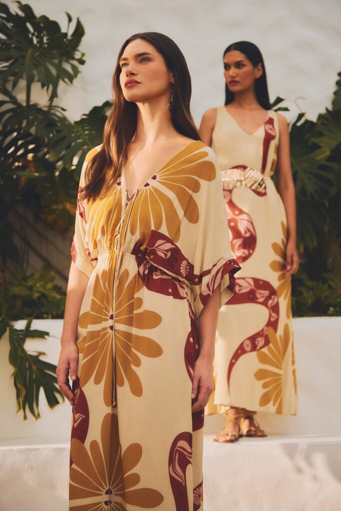 inspiradora. A coleção é inspirada em quatro destinos icônicos — Sicília , Bali, Tulum e Brasil — e traduz o espírito livre e sofisticado do verão em estampas exclusivas, cores marcantes e modelagens fluidas, que expressam o equilíbrio entre elegância e descontração.
