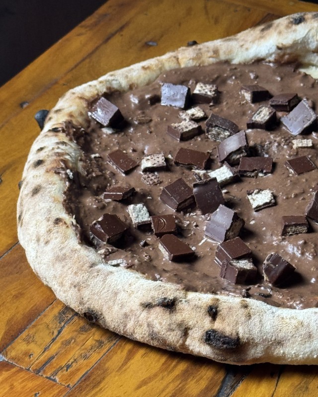 Feita com KitKat, ela combina texturas e sensações, o toque crocante do chocolate, a maciez da massa artesanal e aquele sabor que desperta memórias doces e sorrisos genuínos. É uma pizza feita para compartilhar, dividir gargalhadas e viver o simples prazer de estar junto.