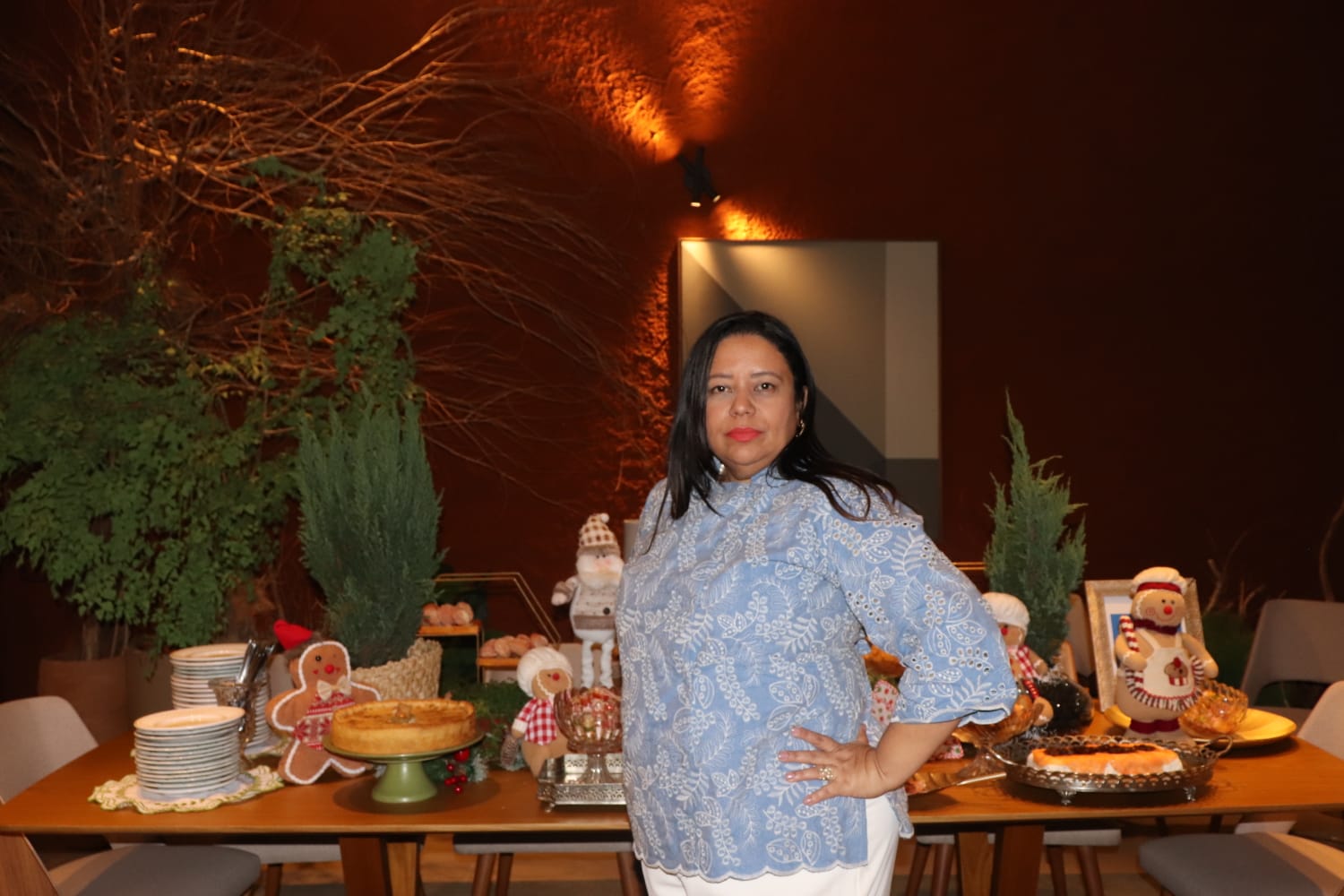 Para a ocasião, Gleiciane preparou um menu exclusivo alusivo ao Natal, com uma mesa inspiradora que convidava os presentes a degustarem iguarias típicas da época, traduzindo em sabores o clima de confraternização e acolhimento proposto pelo evento.