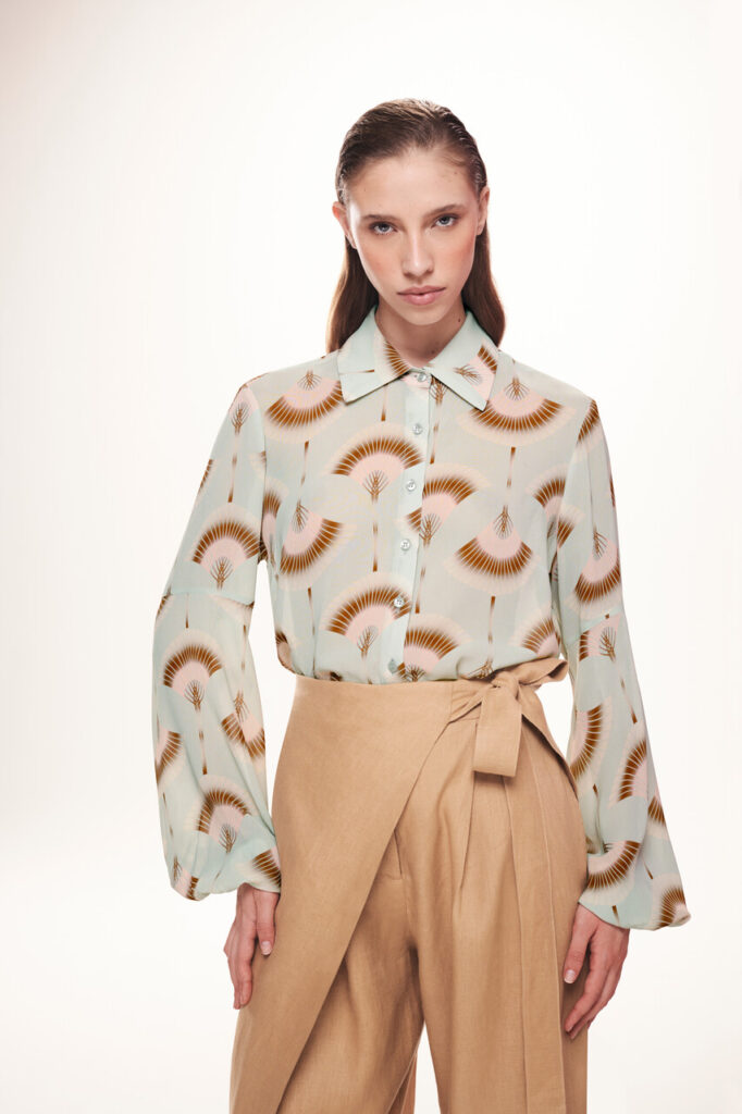 As cores da cidade, rosa seco, verde acqua, bege champagne e camelo, percorrem toda a coleção. Elas se destacam na blusa Gaia, confeccionada em tricot listrado colorido e com o bordado “Sunny Isles”, em referência à região litorânea de Miami. Já os tecidos foram selecionados para atender às demandas dos dias quentes: creponado de viscose, linho puro, bases de alfaiataria com toque natural e sarja garantem elegância, frescor e versatilidade aos looks.