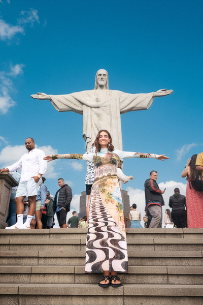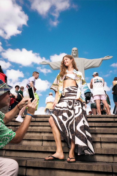 A estamparia segue como um dos grandes destaques. A principal estampa do lançamento traz a paisagem da praia de Copacabana, transformando a orla mais famosa do mundo em roupa. Os desenhos também homenageiam outros ícones culturais da Cidade Maravilhosa, como o samba, o bairro de Santa Teresa e os garimpos da feira da Praça XV.