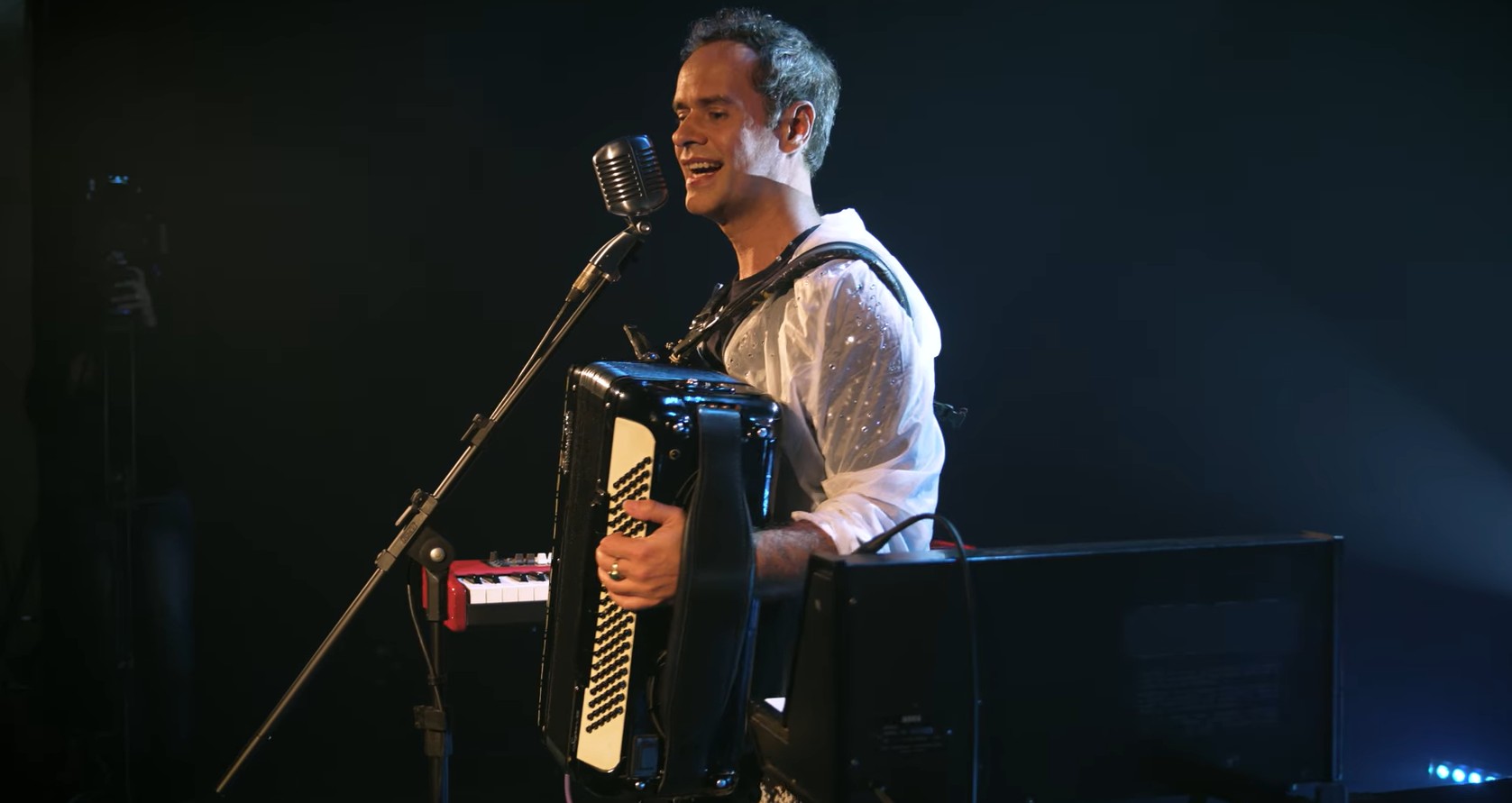 Sozinho no palco, ele constrói paisagens sonoras com sanfona, sintetizadores e voz, revelando nuances poéticas e emocionais que fazem de cada performance uma experiência única.