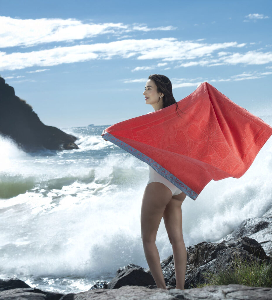 Neta de Antônio Ogliari, fundador da Atlântica Cama e Banho, Ana Júlia Ogliari vivencia o universo têxtil desde a infância. Ainda pequena, foi modelo de várias campanhas de lançamento de toalhas e roupões da marca. Aos 15 anos, passou a cumprir rotina semanal na empresa, conhecendo o processo criativo, da estrutura ao desenho, até chegar ao produto final. Hoje, aos 18 anos, especializando-se no design gráfico, tem suas ideias materializadas, com a criação de sua primeira linha de produtos. Com design autoral, Ana Júlia assina a coleção de Toalhas de Praia Encontros.