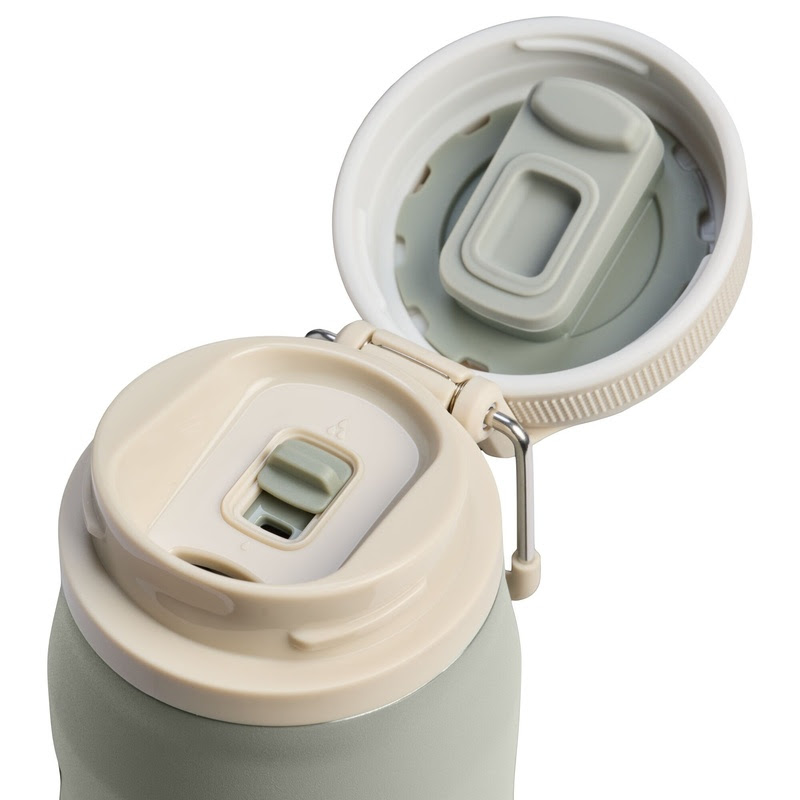 O grande diferencial do modelo está na abertura com apenas uma mão, viabilizada pela nova tampa com sistema Twist Flip. O mecanismo, intuitivo e eficiente, permite girar e destravar o bocal em um único movimento, liberando o fluxo de água de forma prática, ideal para situações em que o usuário está em movimento ou com as mãos ocupadas.