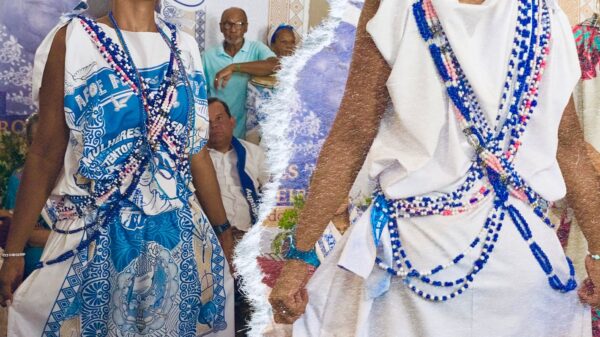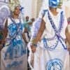 O empoderamento feminino e o respeito às tradições ancestrais estão representados na fantasia 2024 do Bloco Afoxé Filhas de Gandhy, que desfilam no Carnaval...
